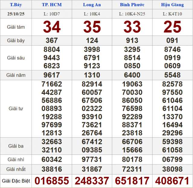 Chốt lô Tiền Giang đặc biệt ngày hôm nay 26/10/2025 như sau: